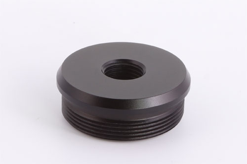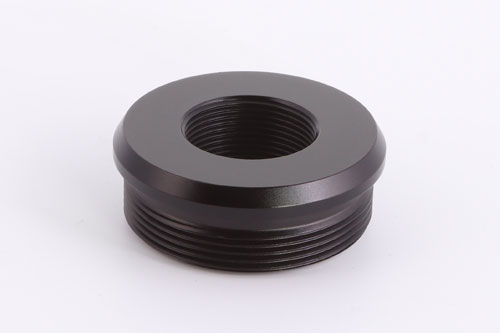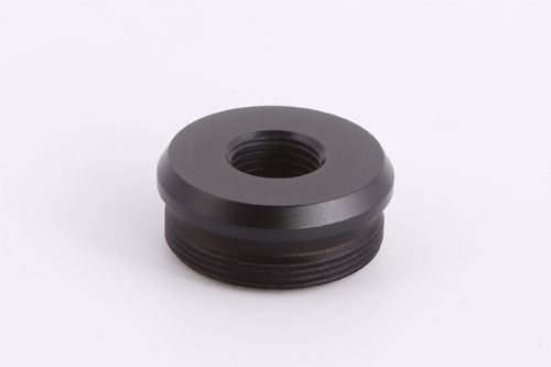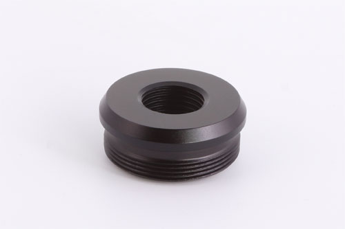 The Huggett ½″ UNF female flat connector, 40mm diameter, with high quality matching finish, and here seen fitted to a Huggett Magna S1 moderator.