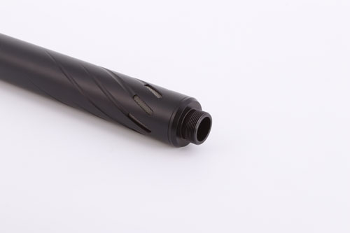 The AirArms S400 & S410 have no barrel threads for attachments, and there is limited clearance between barrel and PCP cylinder. This special Hugget connector is designed solely to enable you to connect a Hugget Atom, Belita or Snipe moderator to your AirArms S400 or S410.
