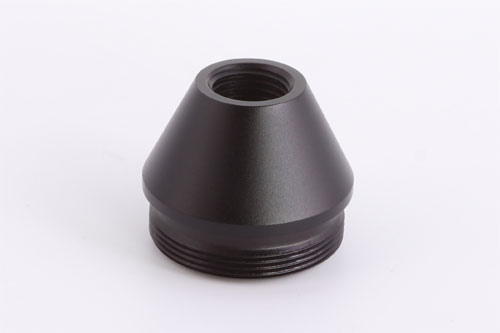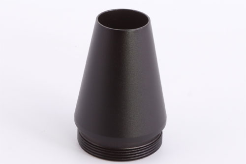 The Huggett ½″ UNF female tapered connector, 31mm diameter, with high quality matching finish, and below seen fitted to a Huggett Snipe S1 moderator.